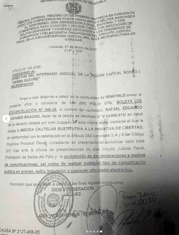 Fue excarcelado Rafael Tudares Bracho, yerno de Edmundo González Urrutia. La información la confirmó su esposa, Mariana González de Tudares, a través de X, donde indicó que Tudares regresó a casa la madrugada de este miércoles tras 380 días de detención arbitraria y más de un año en condición de desaparición forzada.